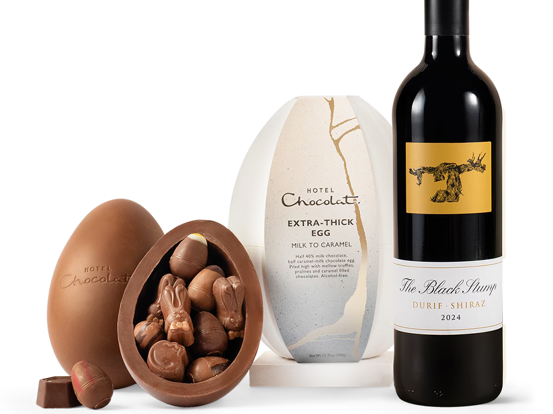 Combining the world-class chocolate craftsmanship of Hotel Chocolat with the refined complexity of red wine, this gift set elevates traditional Easter gifting into a truly decadent experience.